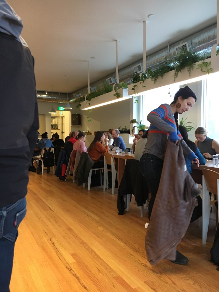The atmosphere was bustling when we walked in. The bar was full, and the communal table had happy patrons lining the seats.