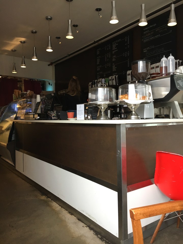 This location is quaint and cozy, seating about 10 people. It has a cool window bar where you can take in the sights. There’s a small “patio” with a couple tables and chairs along the side of the shop where it seems the neighbourhood coffee goers are always catching up on the weekends.