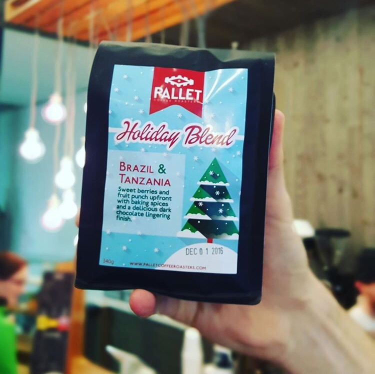 1) Pallet Coffee Roasters Brazil and Tanzania Holiday Blend.