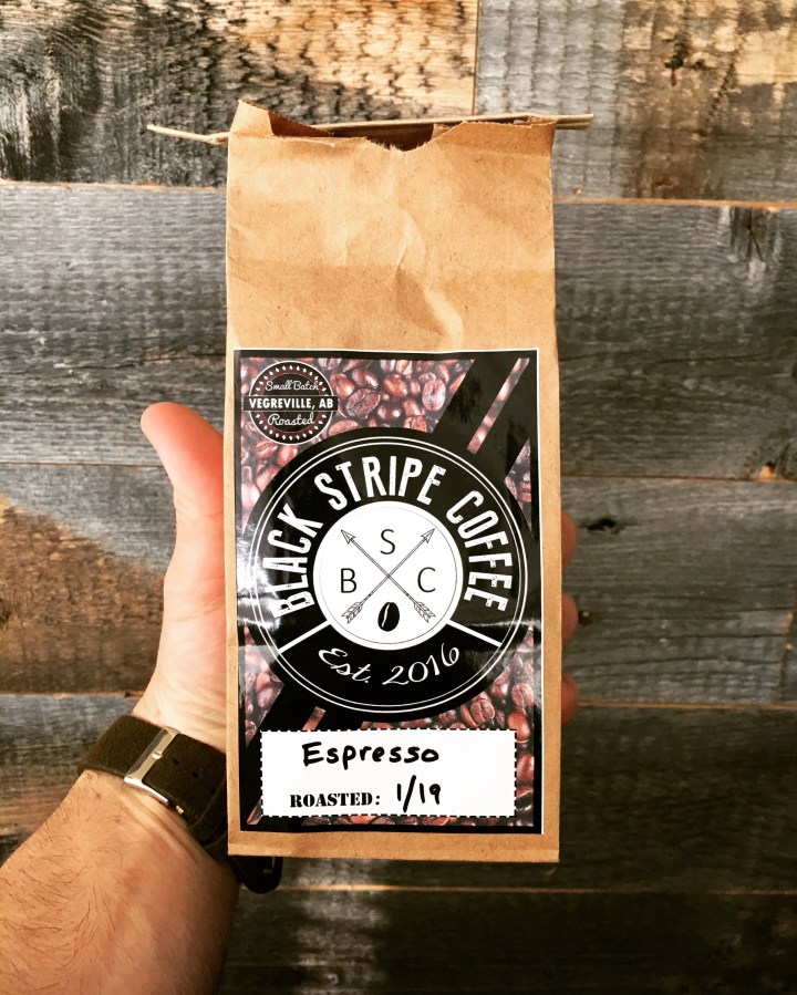 A couple of days ago we were lucky enough to receive a couple of bags of espresso from Black Stripe Coffee, a new micro-batch roaster that’s popped up in Vegreville, Alberta!